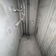 В доме просторная лестничная клетка. Два грузопассажирских лифта .