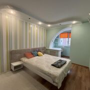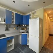 Квартира с хорошим ремонтом, выдержана в едином стиле. Продается с мебелью и с техникой. Уютная кухня оснащена необходимой техникой: холодильник, духовой шкаф, микроволновая печь. Санузел раздельный, в отличном состоянии. Материал полов: плитка (коридор. кухня, санузел) и ламинат. Окна ПВХ. Есть застекленная лоджия, в которой оборудован кабинет.