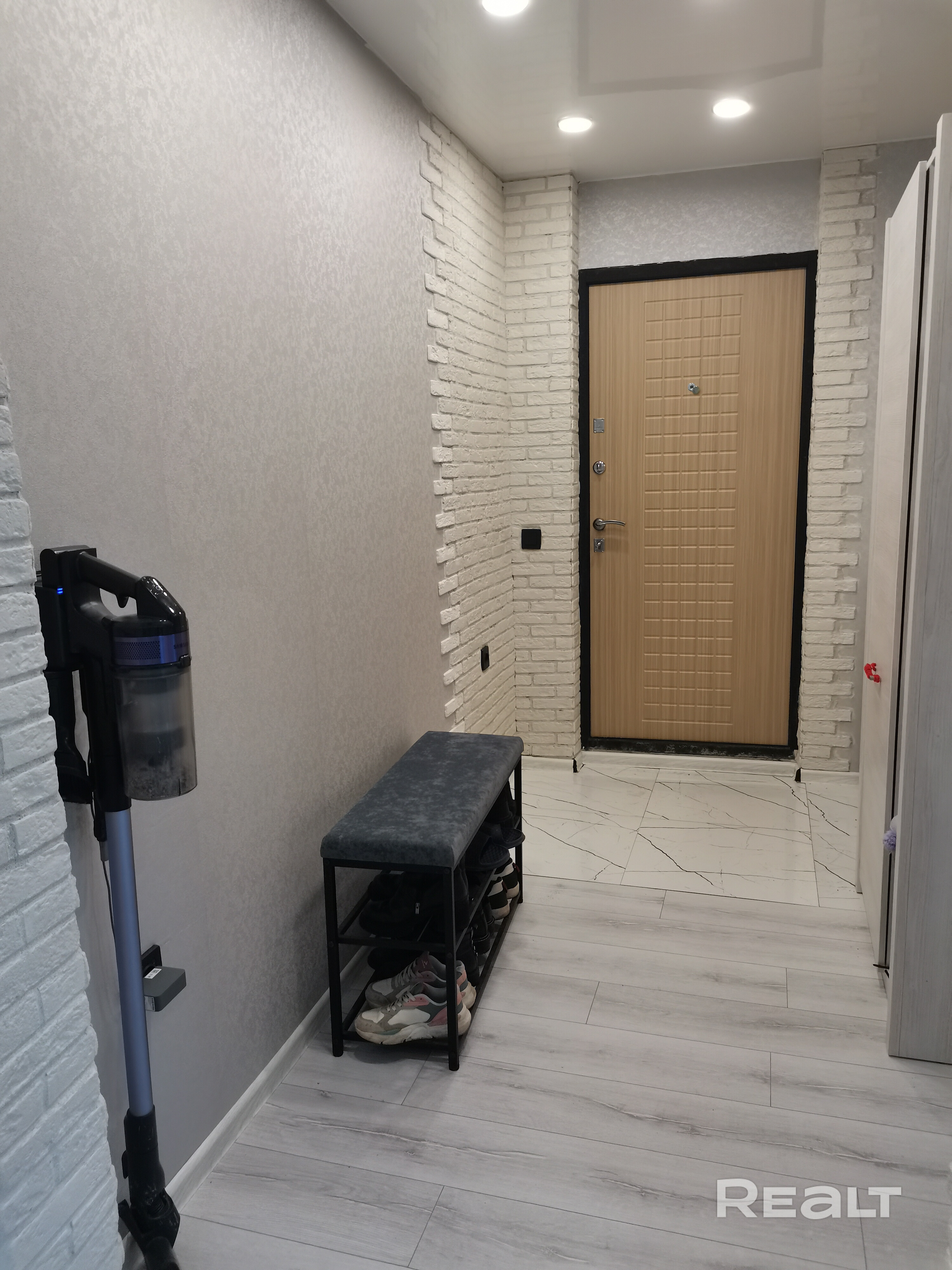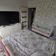 Входная дверь установлена металлическая, межкомнатные- МДФ. По всей квартире уложен ламинат, в кухне и прихожей - плитка. Ванная комната и туалет облицованы плиткой. Санузел раздельный. Окна- стеклопакет ПВХ. Потолки во всей квартире натяжные. Стены оклеены обоями. После продажи в квартире остаётся стиральная машина LG, холодильник Атлант, микроволновая печь, вытяжка и практически вся мебель. Так что это отличный вариант для тех, кто не хочет делать ремонт, а хочет сразу жить с комфортом.