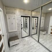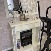 Выполнен ремонт в светлых тонах. На полу ламинат, в зале установлен искусственный камин.
