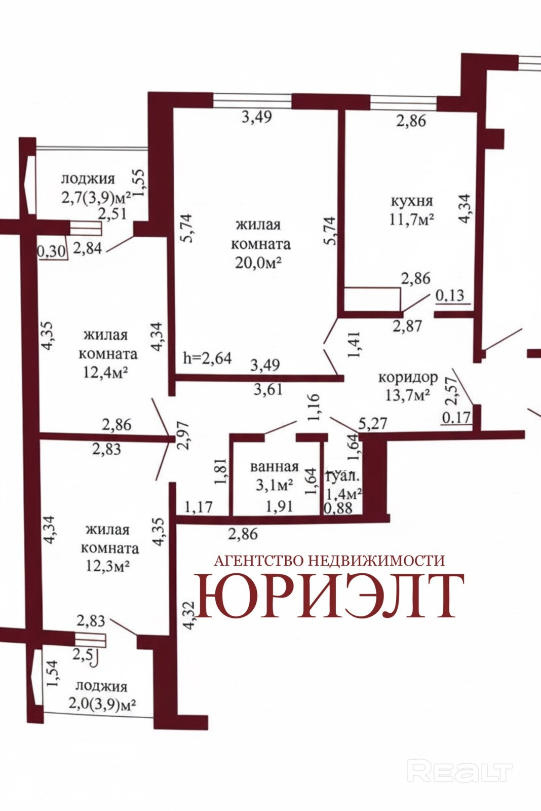 Идеальной планировкой предусмотрено: кухня 11.7 м2 в комплекте встроенная техника, спальные комнаты 12.4 м2, 12.3 м2,раздельный сан. узел.