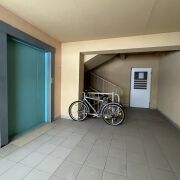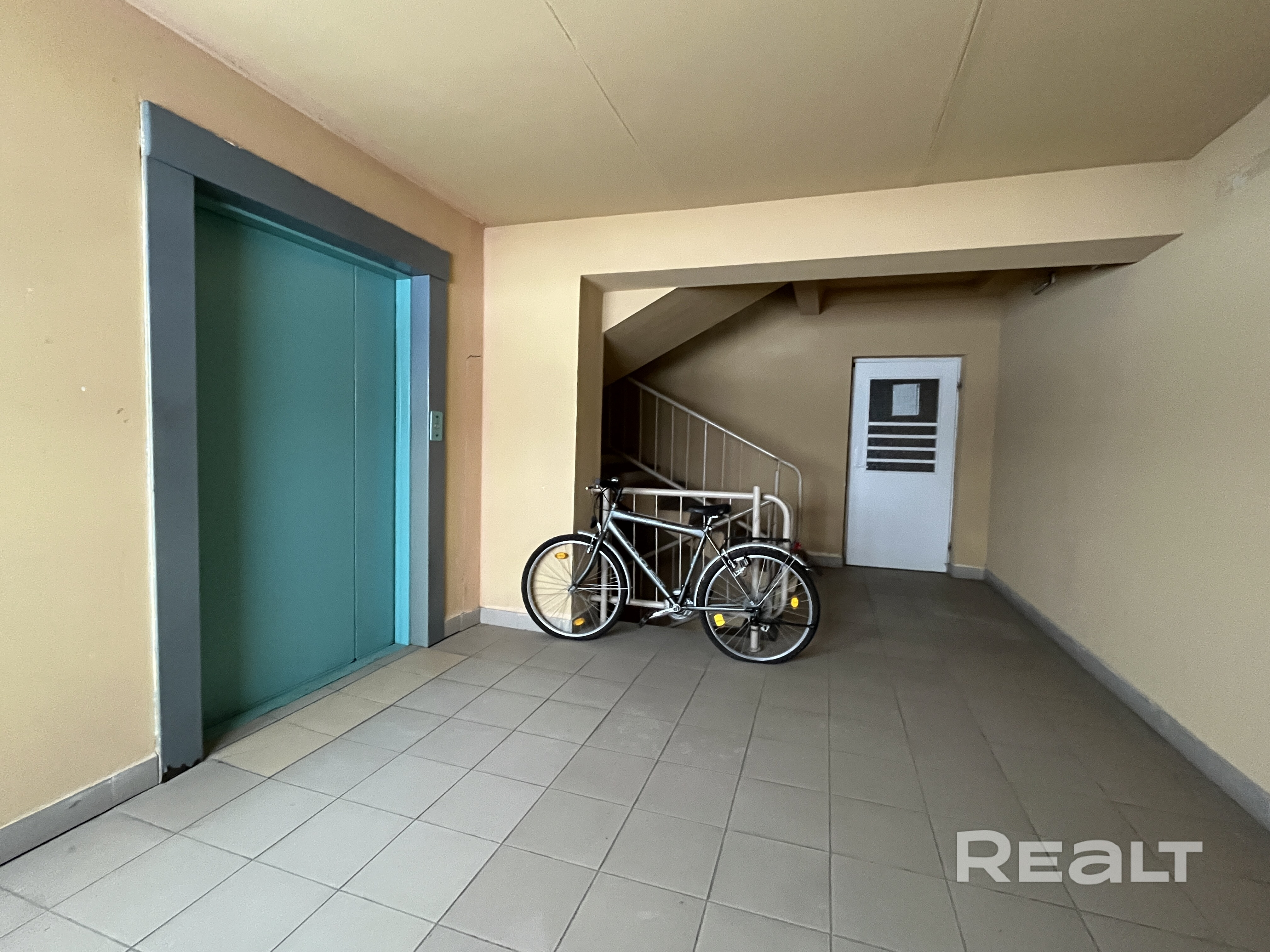 Придомовая территория с парковкой. Чистый подъезд с широкими лестничными маршами, пандусом, большой грузовой лифт.