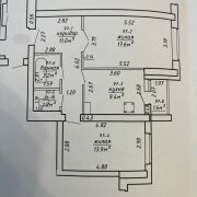 Общая площадь 57 м2 (58,6 по СНБ), жилая – 31,5 м2, площадь кухни- 9,4 м2.