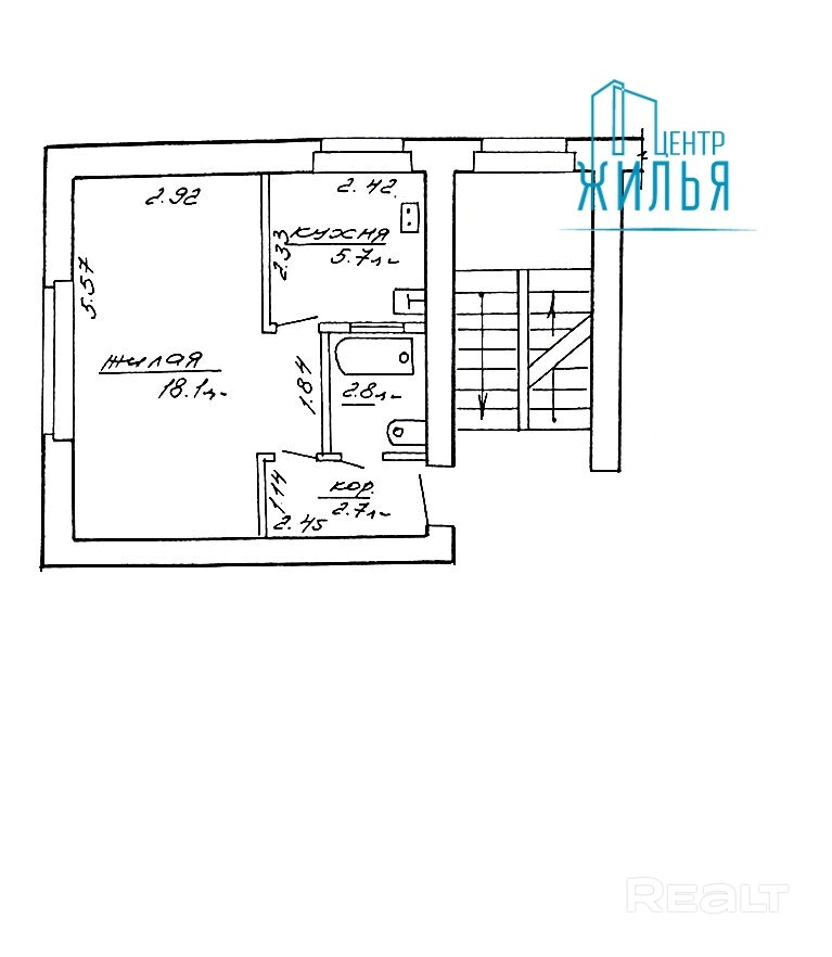 Площадь – 29,3/18,1/5,7 м2.