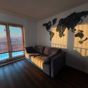 Отопление квартиры производится 2-ухконтурным котлом Bosch, позволяющим регулировать поддержание температуры под любые погодные условия.