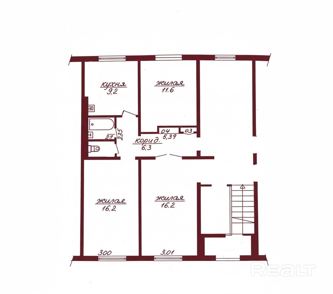 3-комнатная квартира г. Щучин ул. Островского д.21