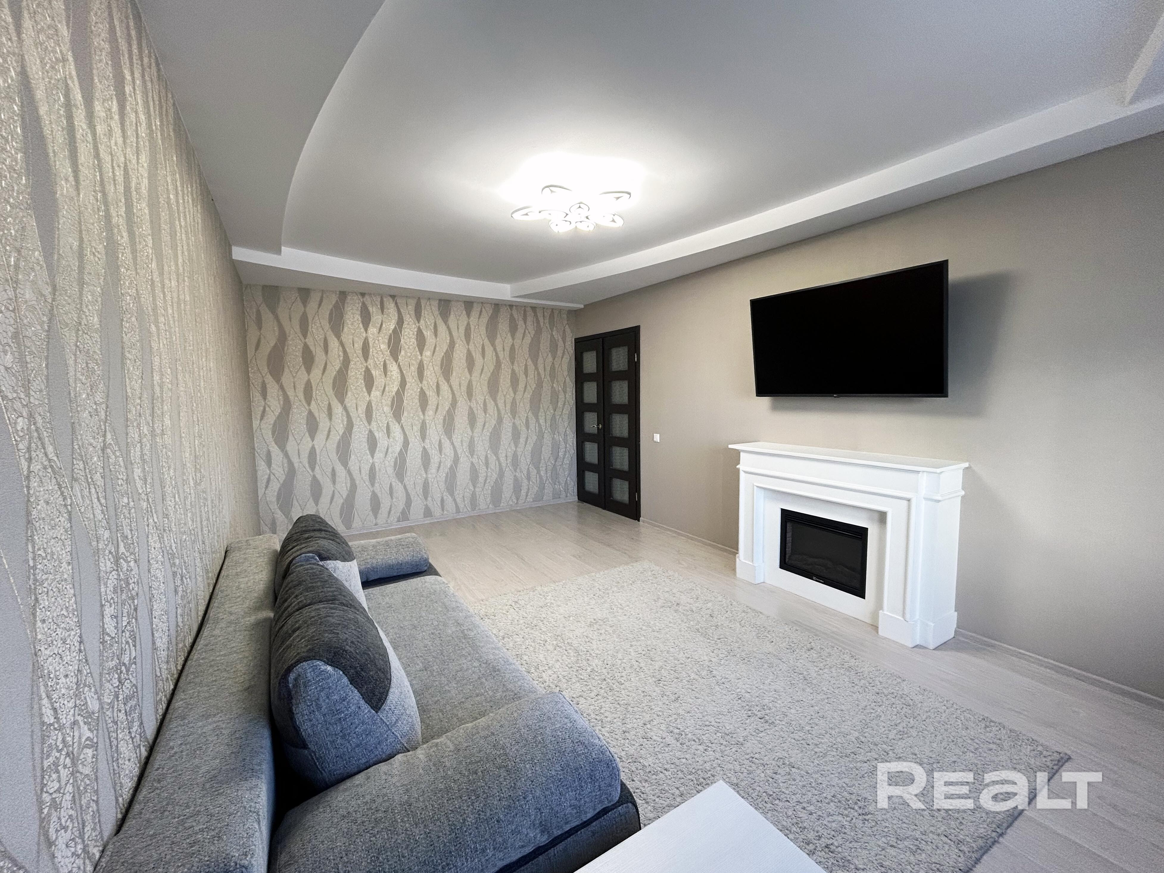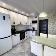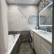 Выполнен качественный современный ремонт в приятных гармоничных тонах. Потолки выровнены и окрашены, стены оклеены обоями. На полу ламинат и плитка. Современная кухня со встроенной бытовой техникой. Санузел раздельный, облицован плиткой. Установлен бойлер для подогрева воды в период сезонных отключений.