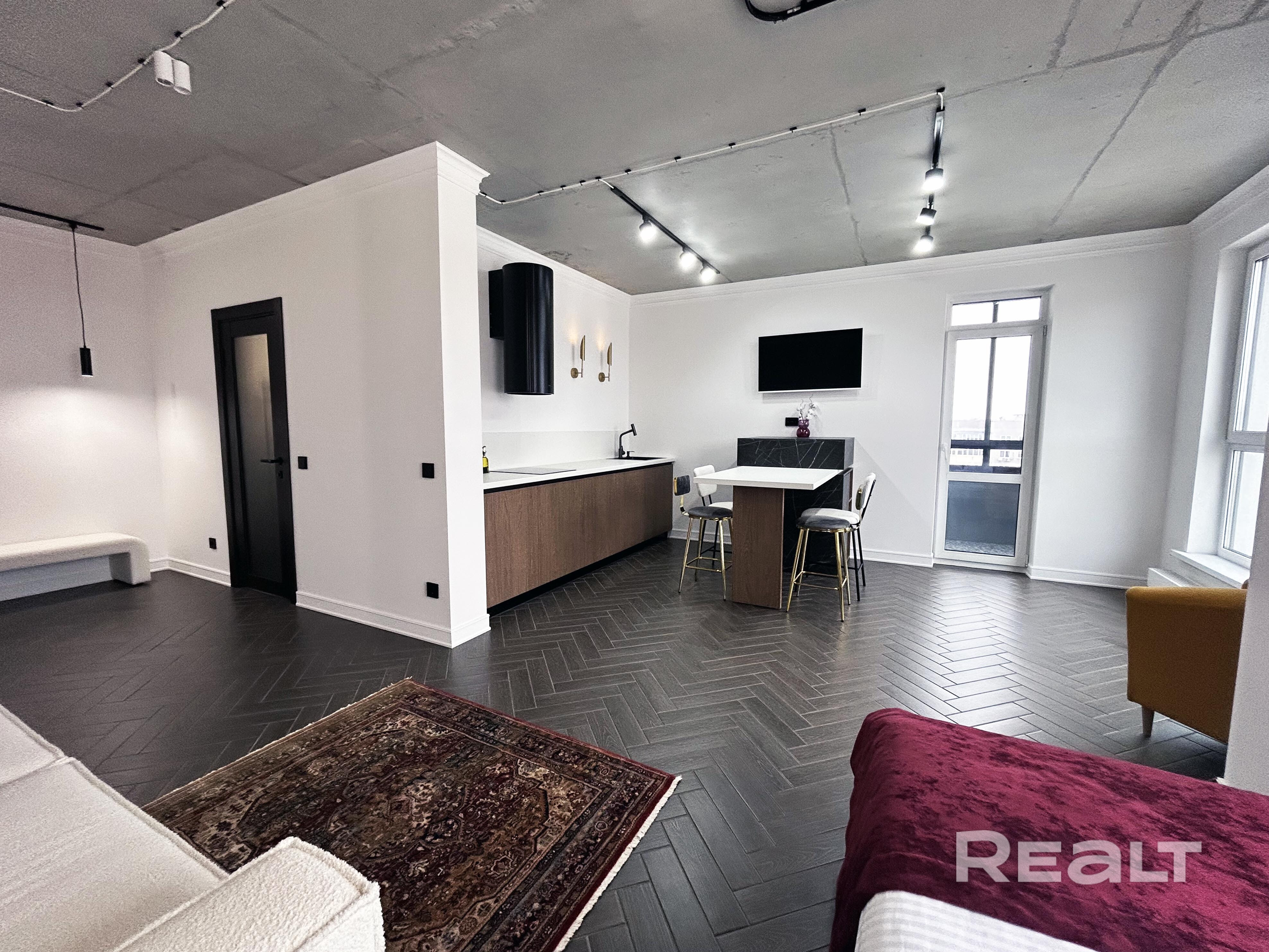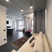 • Дизайнерский интерьер: фактурный бетон, зонирование пространства, стильные детали.