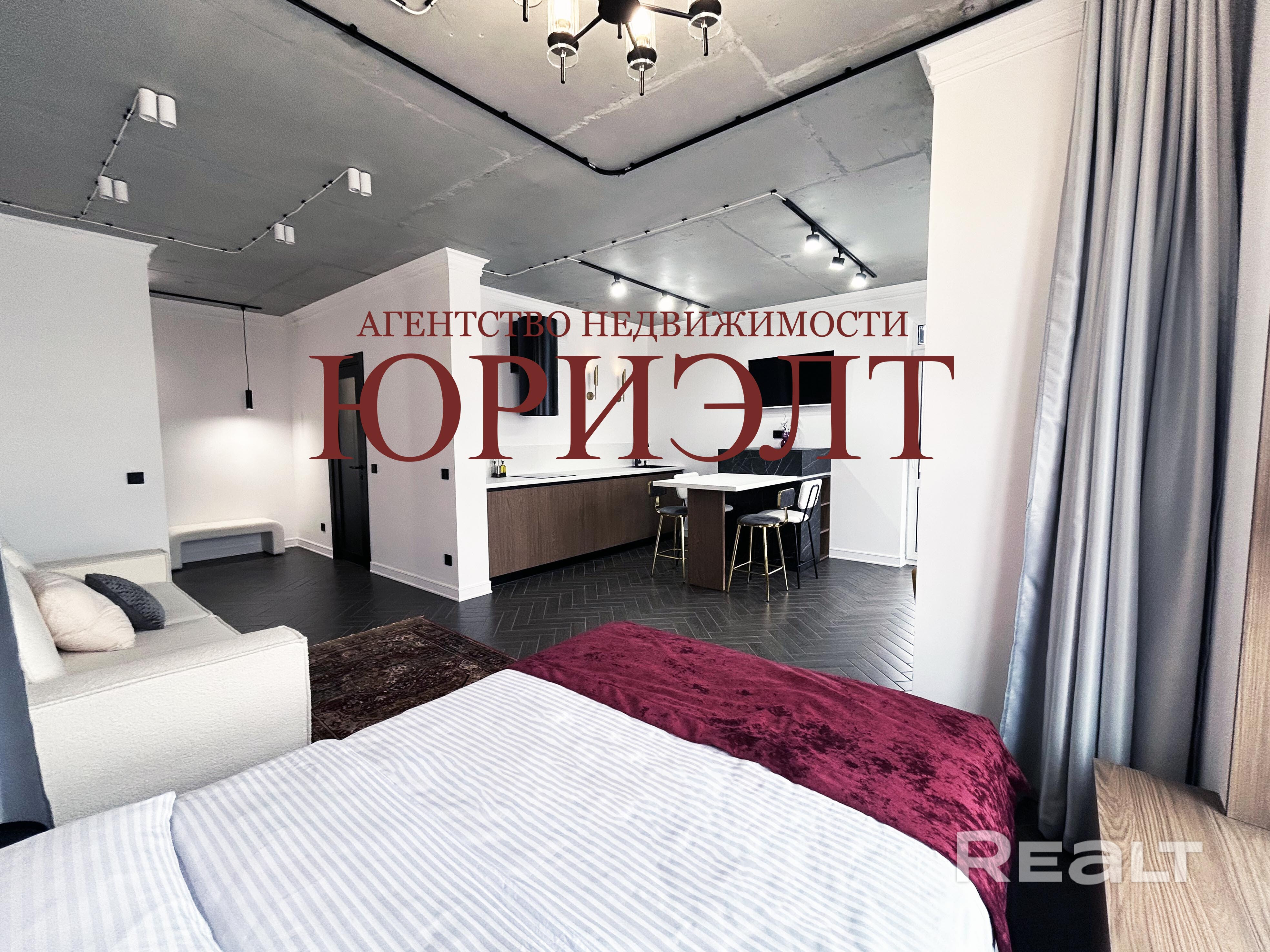 Стильная квартира-студия в ЖК «Купальский» Улица Советских Пограничников,57 Блочный дом 2024 года постройки 5 этаж из 8 Общая площадь квартиры 43,7 кв. м.