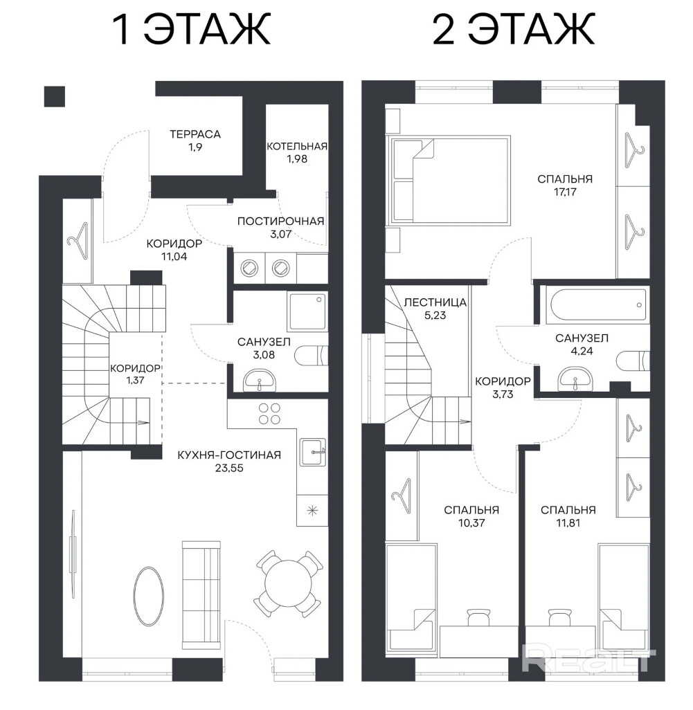 Квартира в 2-квартирном таунхаусе от застройщика