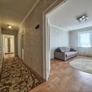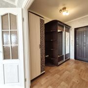 В квартире сделан аккуратный в светлых тонах жилой ремонт. На полу лежит линолеум, стены оклеены обоями, потолки ровные покрашены.