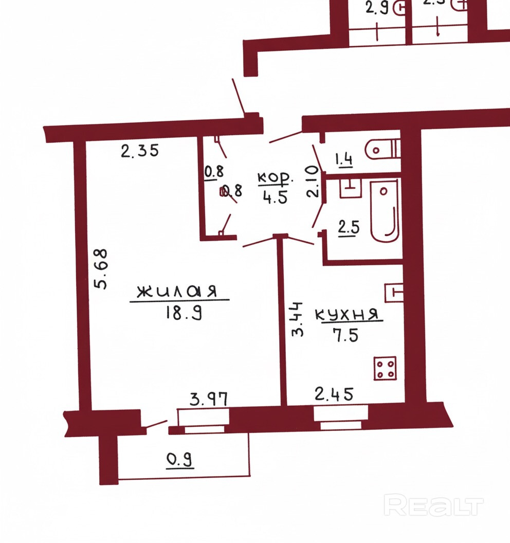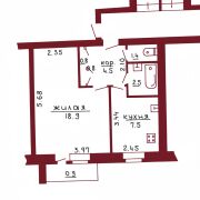 В продаже 1-комнатная квартира по ул. Терешковой, 40. Расположена на 2/5 этажного кирпичного дома 1985 г.п. Общая площадь 35,6 кв.м, жилая 18,9 кв.м, кухня 7,5 кв.м.