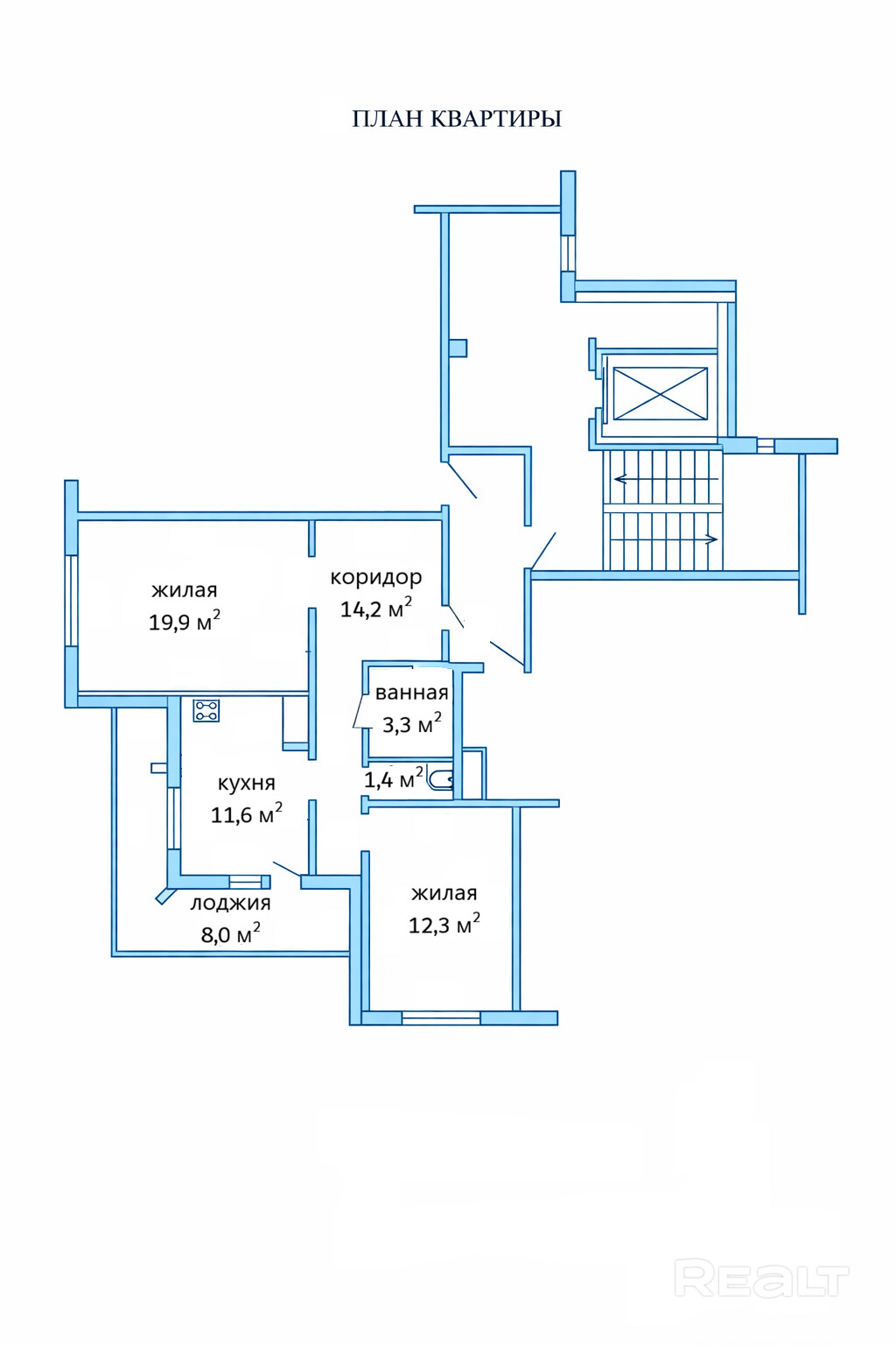 Общая площадь квартиры по СНБ — 70.7 м.кв., жилая — 32.2 м.кв., огромная лоджия 8.0 кв.м., просторная кухня- 11,6 метров.