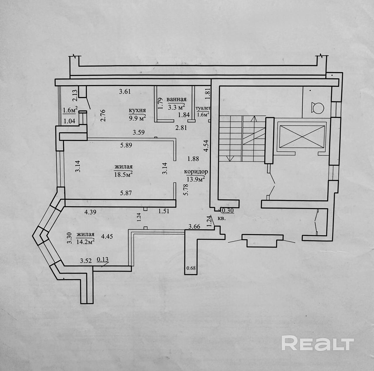 • Площадь: Общая площадь 63 м2, площадь комнат 32,7 м.кв., ( две большие комнаты: 18,5/15,2 м.кв.), кухня - 9,9 – простор для жизни и реализации ваших идей.