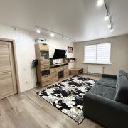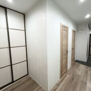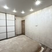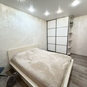 Пол в квартире – ламинат, в прихожей и кухне - плитка. Потолки – натяжные. На стены нанесена декоративная штукатурка. Санузел раздельный, облицован плиткой. Окна – деревянные стеклопакеты. Металлическая входная дверь, межкомнатные двери в одном стиле.