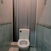 Санузлы облицованы плиткой, на потолке - сайдинг.