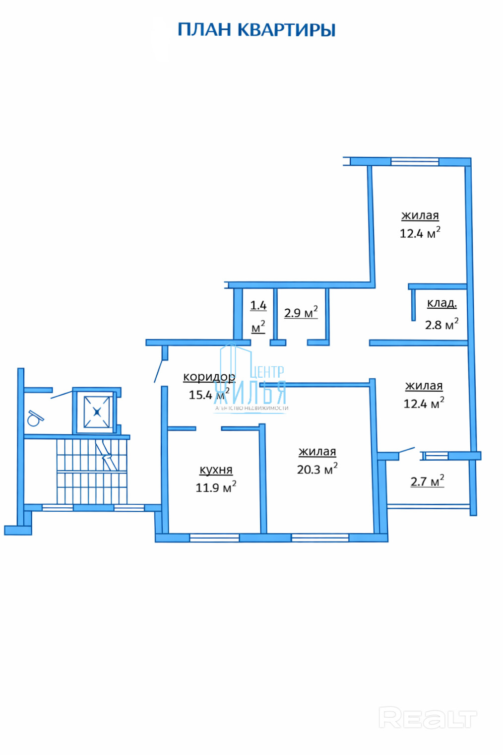 Натяжные потолки: в коридоре, на кухне и в одной из комнат 12,4 м.кв. В гостинной и третьей комнате - потолки выравнивались.