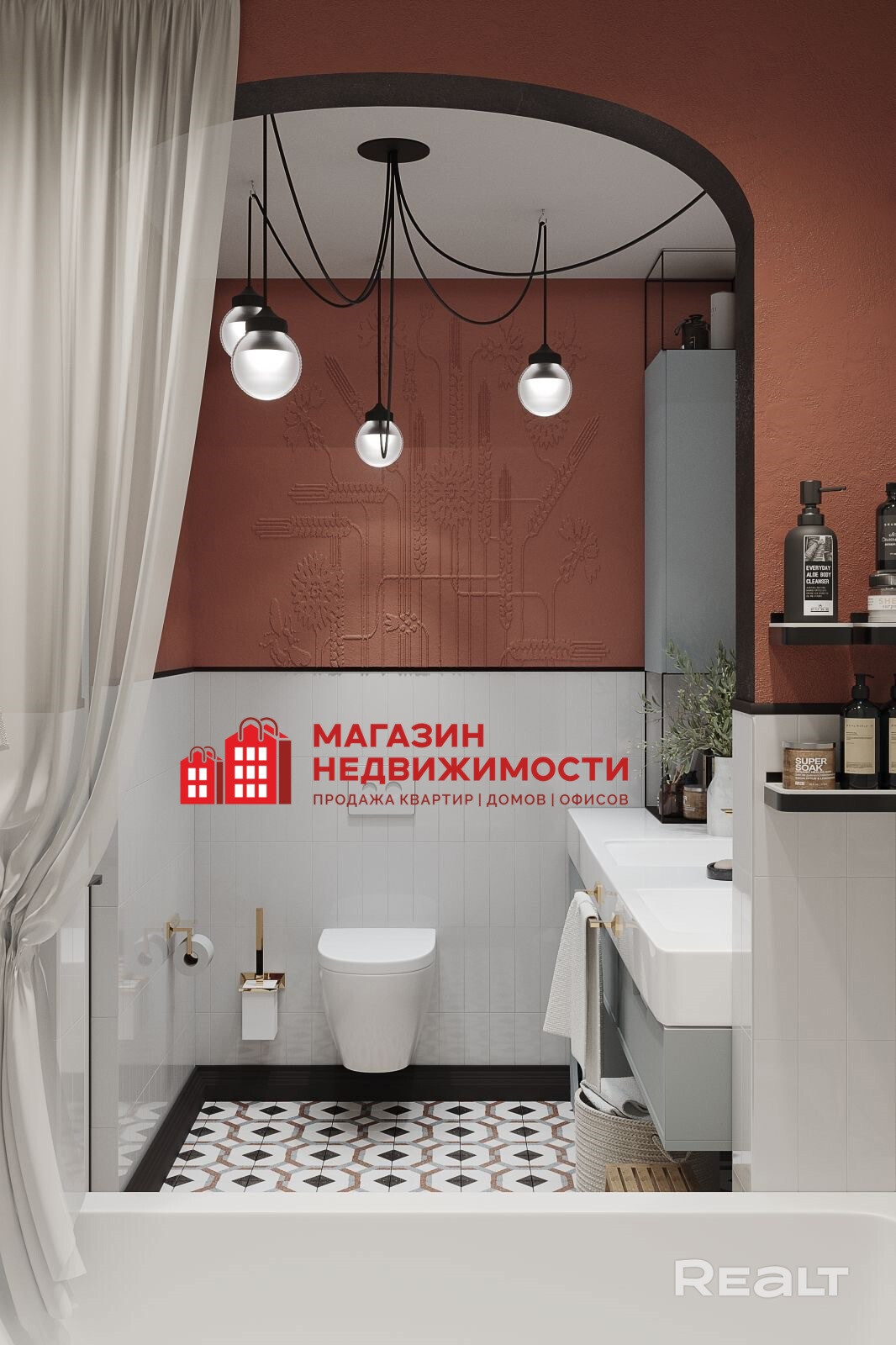— санузлы облицованы плиткой.