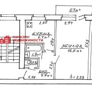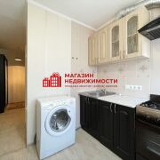 Квартира расположенная на 4 этаже 5-этажного кирпичного дома 1965 года постройки. Площадь квартиры по СНБ 31,4 м2 (в т.ч. балкон), общая – 30,7 м2, жилая – 16,6 м2, кухня – 6,4 м2, высота потолков 2,53 м. Окна – ПВХ; пол: в жилой комнате – ДВП, кухне и прихожей – линолеум, санузел – керамическая плитка; стены: комната и прихожая – обои и элементы декора, санузел – керамическая плитка; потолок: окрашен. Санузел совмещенный, установлена сантехника, оснащен ванной, раковиной с тумбой и зеркалом, унитазом, заменены трубы (установлены полипропиленовые). Встроенная кухня, газовая плита, установлены стиральная машина и холодильник. Входная дверь металлическая. При продаже мебель и техника остаются новому владельцу по согласованию.