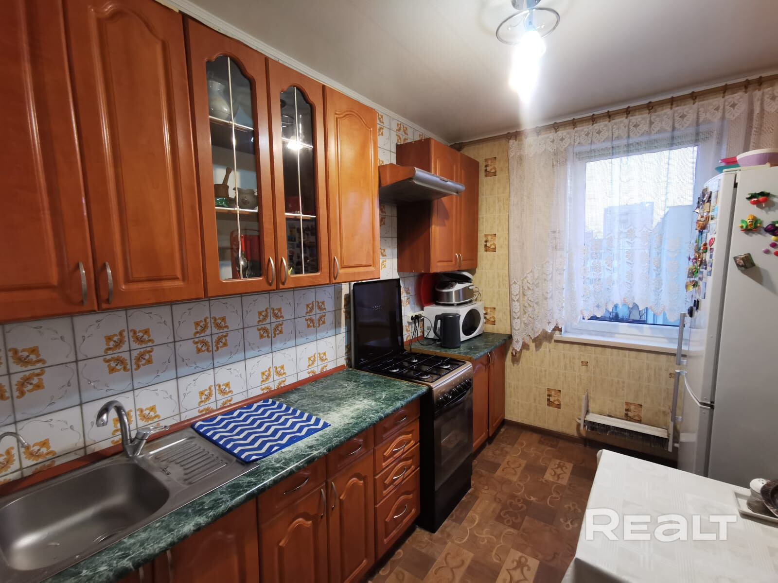 5 этаж пятиэтажного дома (имеется тех.этаж).Панельный дом 1988   года постройки. Комнаты 13,9 кв.м(выход на застеклённую лоджию) и 16.4 кв.м располагаются по обе стороны. Кухня квадратной формы 8 кв.м, сан.уэел-раздельный.