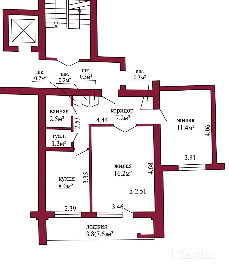 Площадь с лоджией по СНБ 51,4 м2