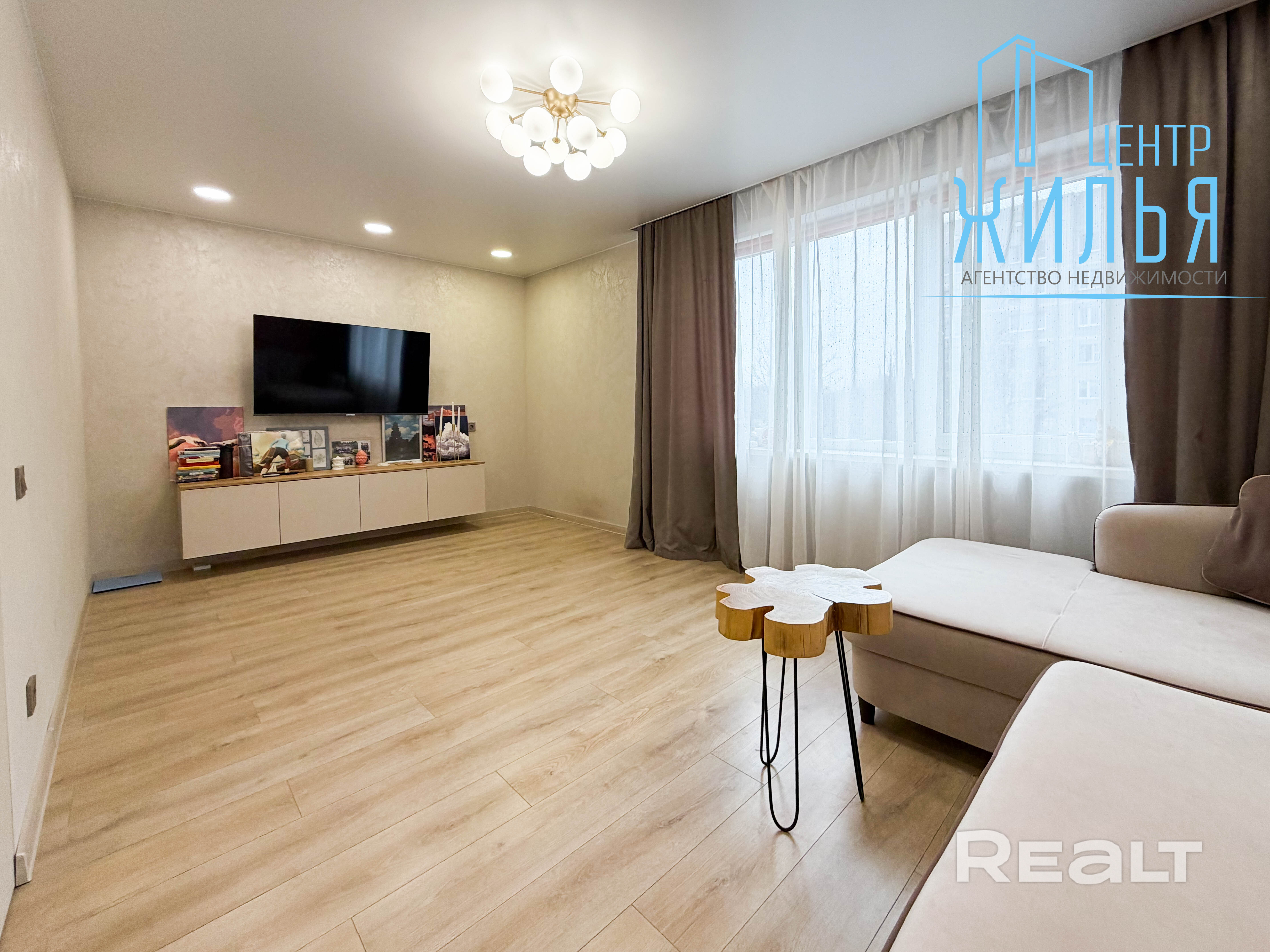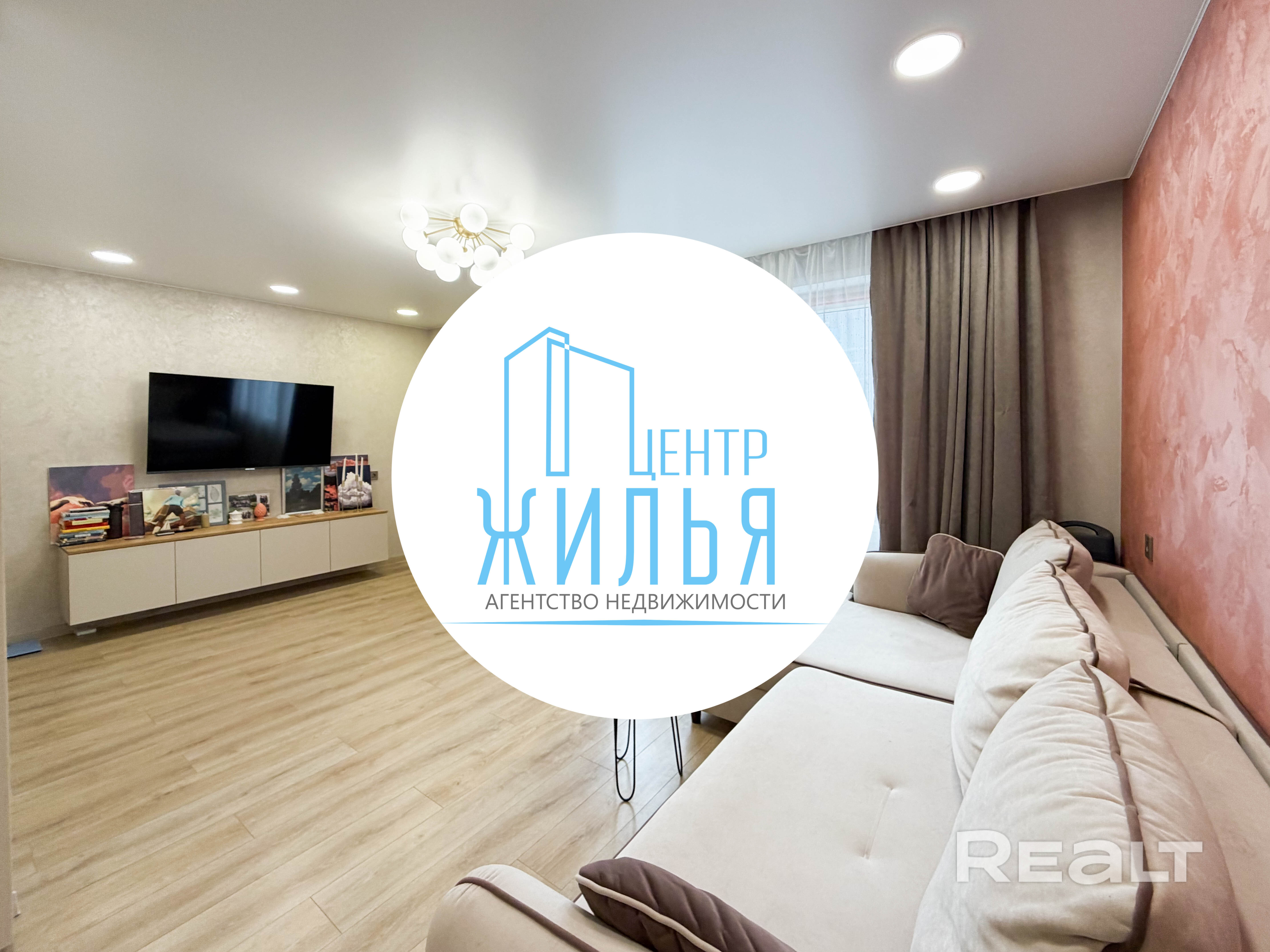 Во всех комнатах – стеклопакеты ПВХ, стены – декоративная штукатурка/обои, пол – ламинат/ плитка, потолок – натяжной, сан.узел (раздельный) – плитка, входная металлическая дверь.