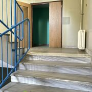 В подъезде: на каждом этаже стоят дополнительные двери, отделяющие квартирную площадку от лестничной; мраморные лестничные ступени.