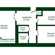 Жилые комнаты площадью 16.9 м2 и 11.0 м2. (изолированные). Кухня - 8.5 м2.