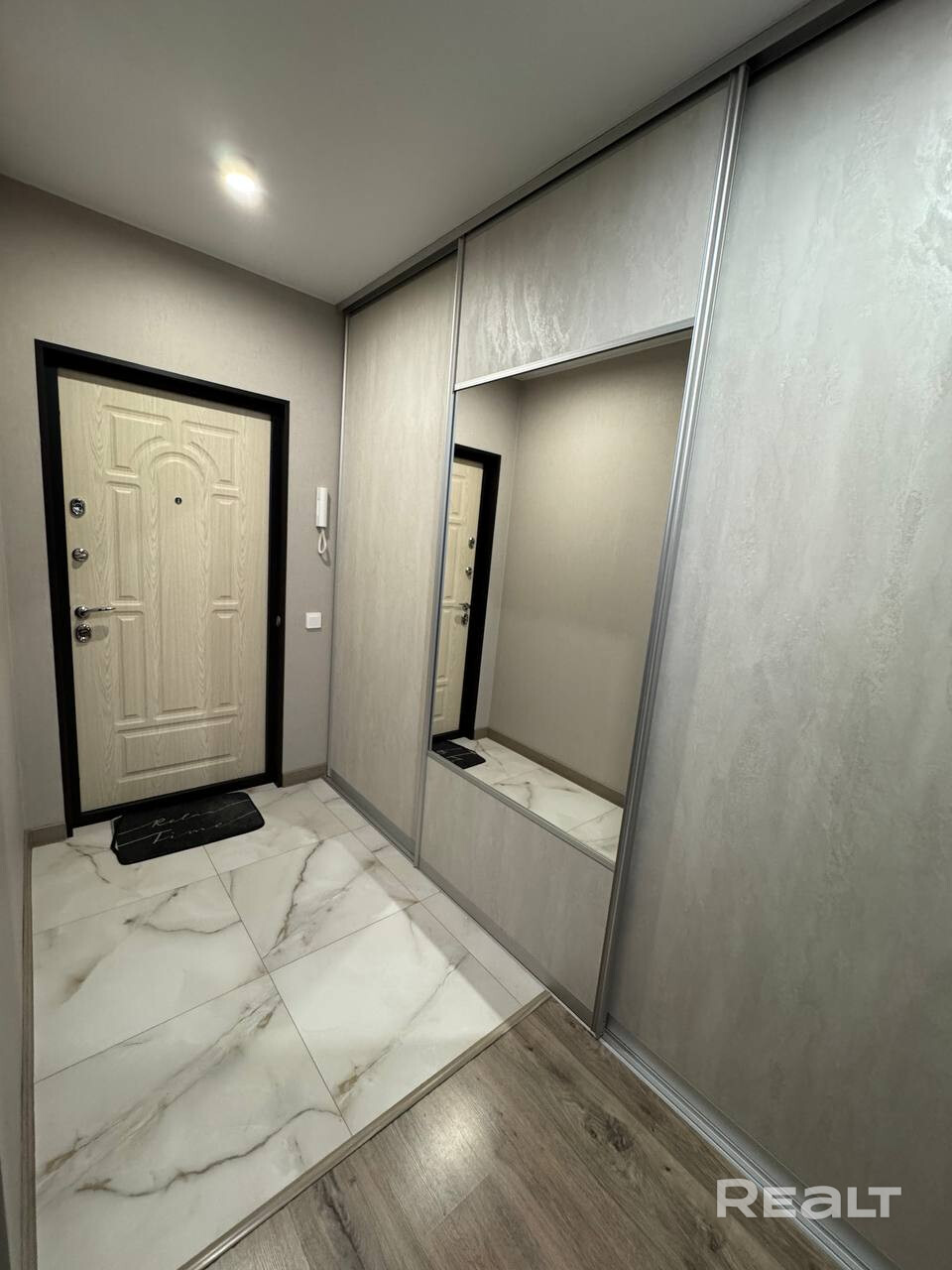 В продаже просторная 1-а комнатная квартира в доме 2017г постройки. В квартире сделан современный ремонт из качественных материалов. В коридоре уложена плитка и ламинат . По всей квартире множество точек освещения. При входе встроенный шкаф и дорогостоящая входная дверь. В зале 16.7м2 установлены закладные для разделения комнаты на рабочую и зону отдыха. В кухне 8.3м² проведено дополнительное освещение. Уложена плитка , стены оклеены обоями. Сделана акцентная стена в обеденной зоне. Из кухни есть выход на просторную лоджию с французким остекление в пол и дополнительным освещением. На полу, приятный на ощупь, искусственный газон. С/у раздельный, облицован керамогранитом. В ванне заменен змеевик, установлено зеркало с подсветкой и столешница с умывальником на всю длину ванны. В корридоре удачно разместилась глубокая гардеробная с отдельным освещением. Квартира очень тёплая и светлая . Общая площадь по снб 43,4м² Кухня 8,3м² Жилая 16,7м² 5/8 этаж Продается частично с мебелью и техникой. В доме чистый и светлый подъезд, установлен грузовой лифт. Вокруг дома множество парковочных мест, детские площадки и пешеходные зоны. В шаговой доступности стоматология, 37 школа заправка "Беларуснефть" , магазины "Санта", "Маяк" и многое другое. В 10мин от дома озеро "Юбилейное" Работаем с привлечением кредитных средств, материнским капиталом, жилищным балансом. Торг при осмотре.