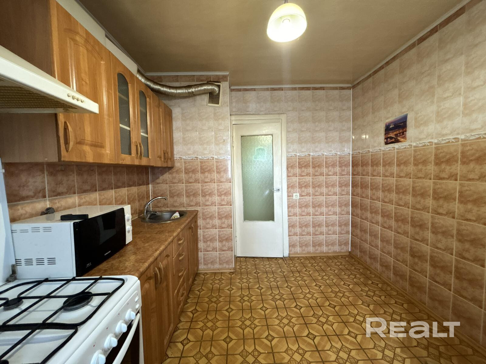 Материал полов: плитка и линолеум.