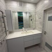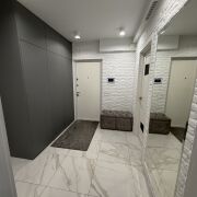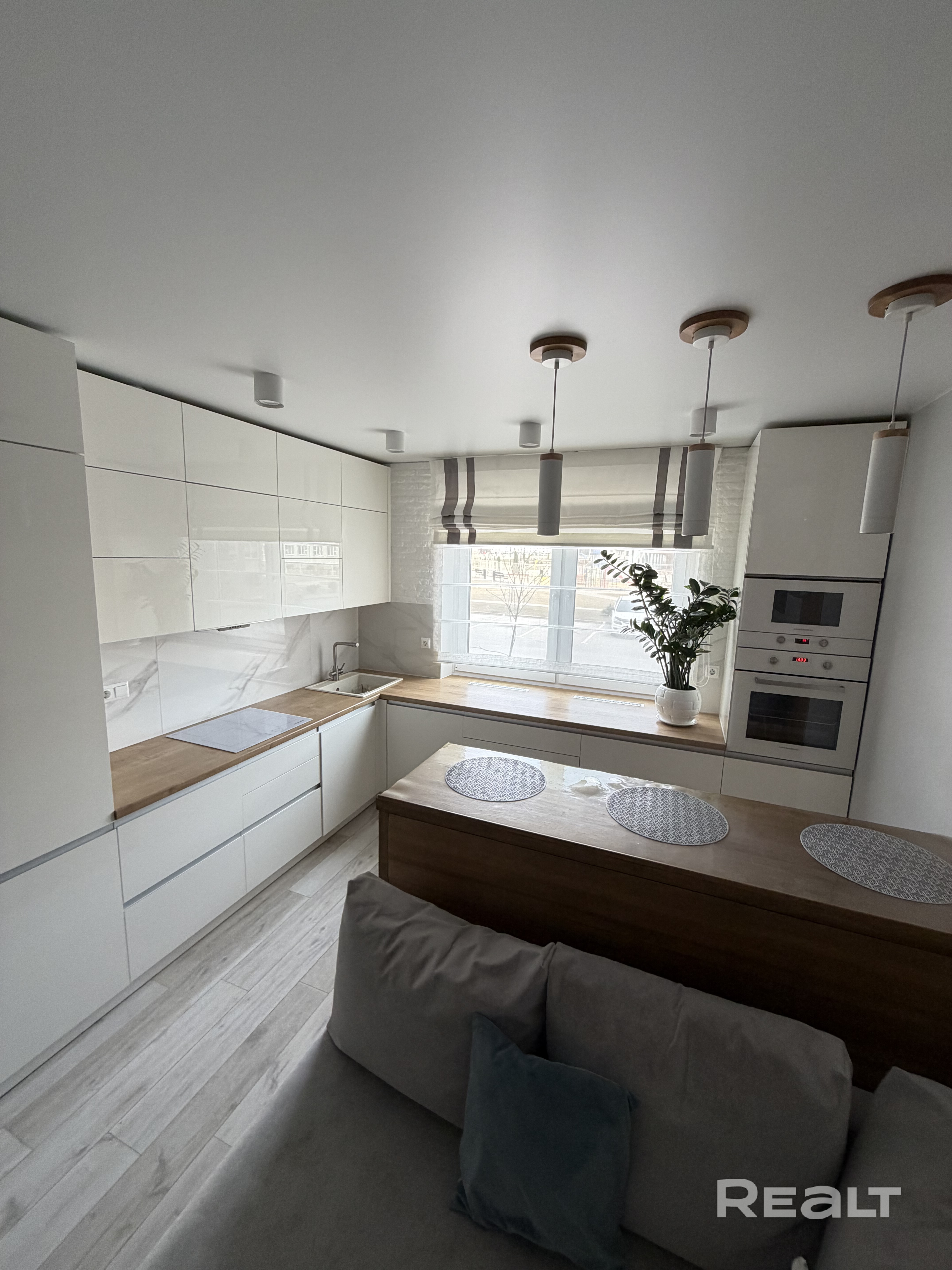 Продаётся уютная и современная 2-комнатная квартира формата евротрешка на высоком первом этаже. Квартира очень тёплая, с современным ремонтом. Установлены кондиционер с функцией обогрева, видео домофон, сигнализация, проточный водонагреватель, тёплый пол на балконе. Продаётся со встроенной мебелью и техникой. Также есть собственное подвальное помещение. Рядом школа, детский сад, магазин, поликлиника, остановки общественного транспорта, церковь, костел. Закрытый двор со шлагбаумом.