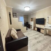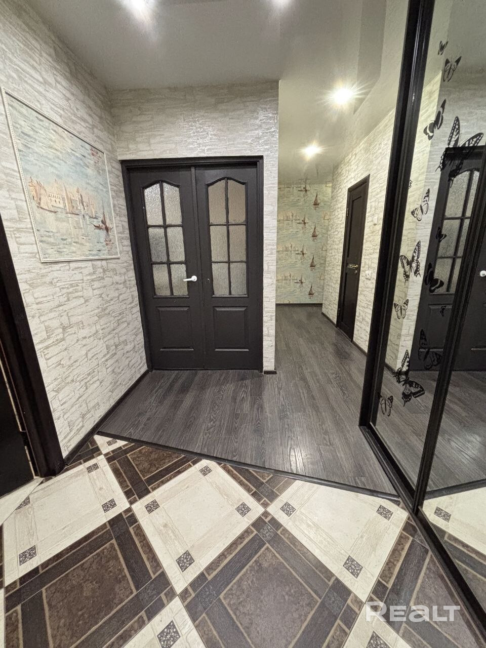 В квартире сделан аккуратный жилой ремонт. На полу уложен ламинат, плитка, стены оклеены обоями, потолки ровные.