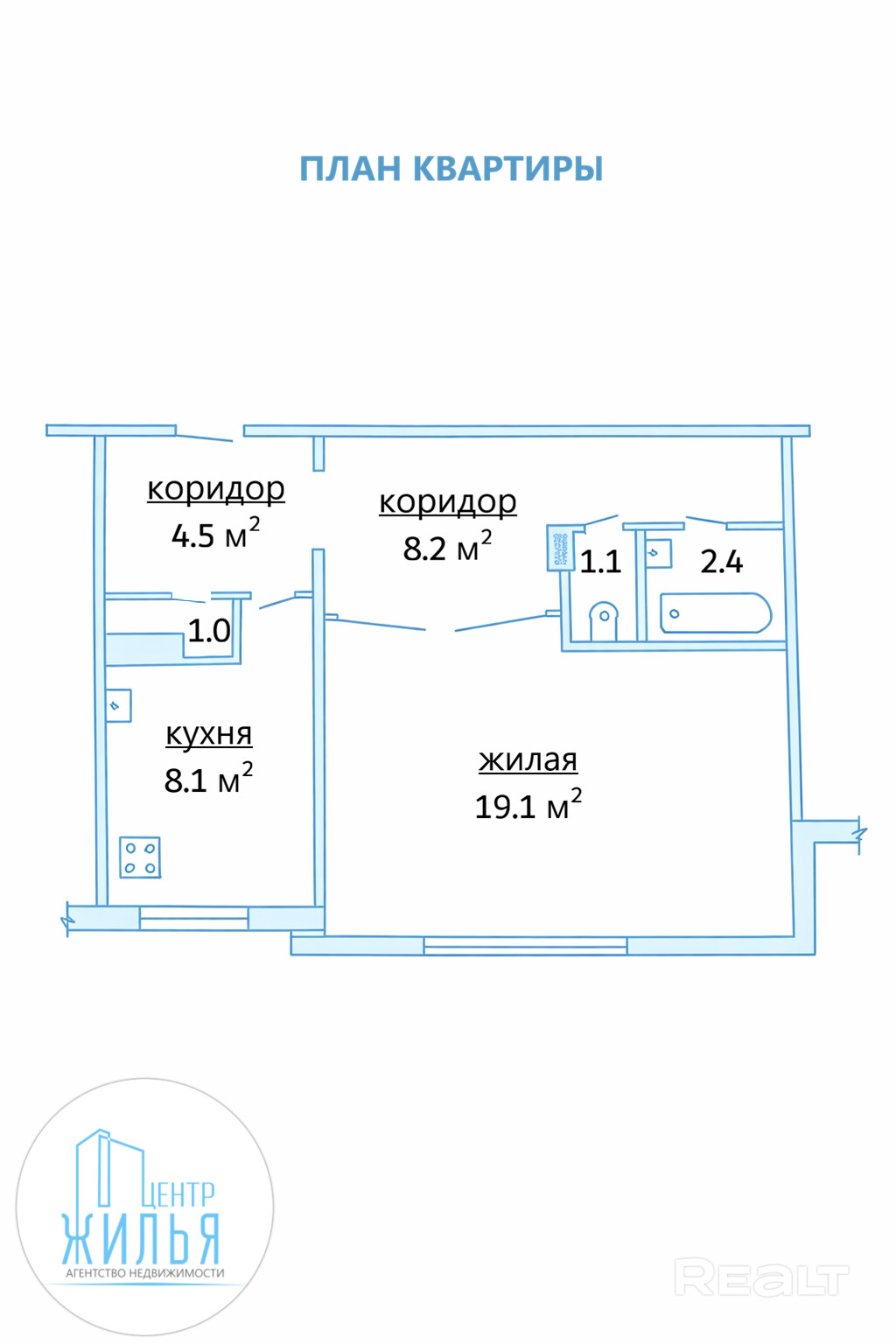 Просторная жилая комната, отдельная кухня, раздельный санузел. Балкона нет.