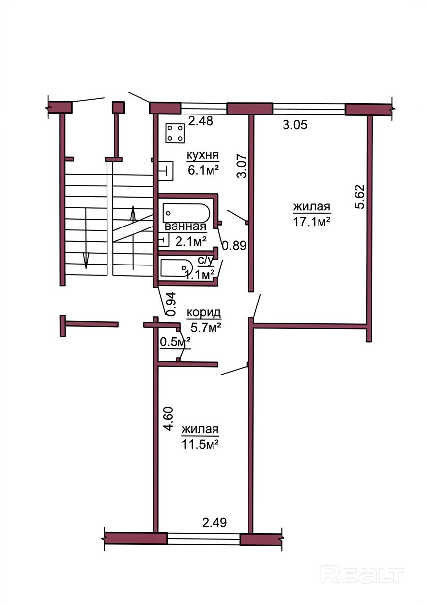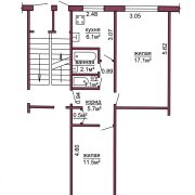 Обе комнаты светлые, окна выходят на разные стороны, обе в тихий двор, что гарантирует отсутствие лишнего шума. Общая площадь 44,1, две комнаты 17,1 и 11,5 м2, кухня 6,1 м2.