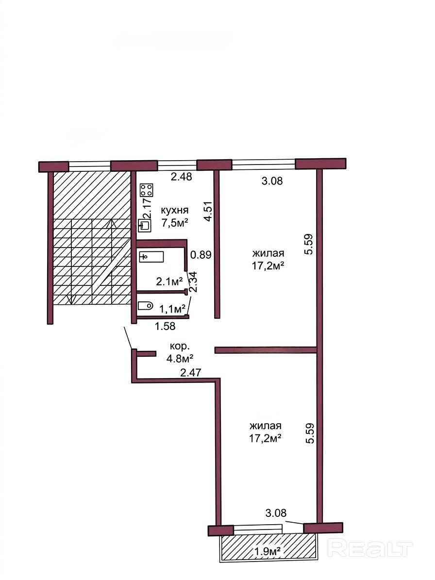 2-комнатная квартира г. Гродно, ул. Врублевского, 58 (м-н Форты)