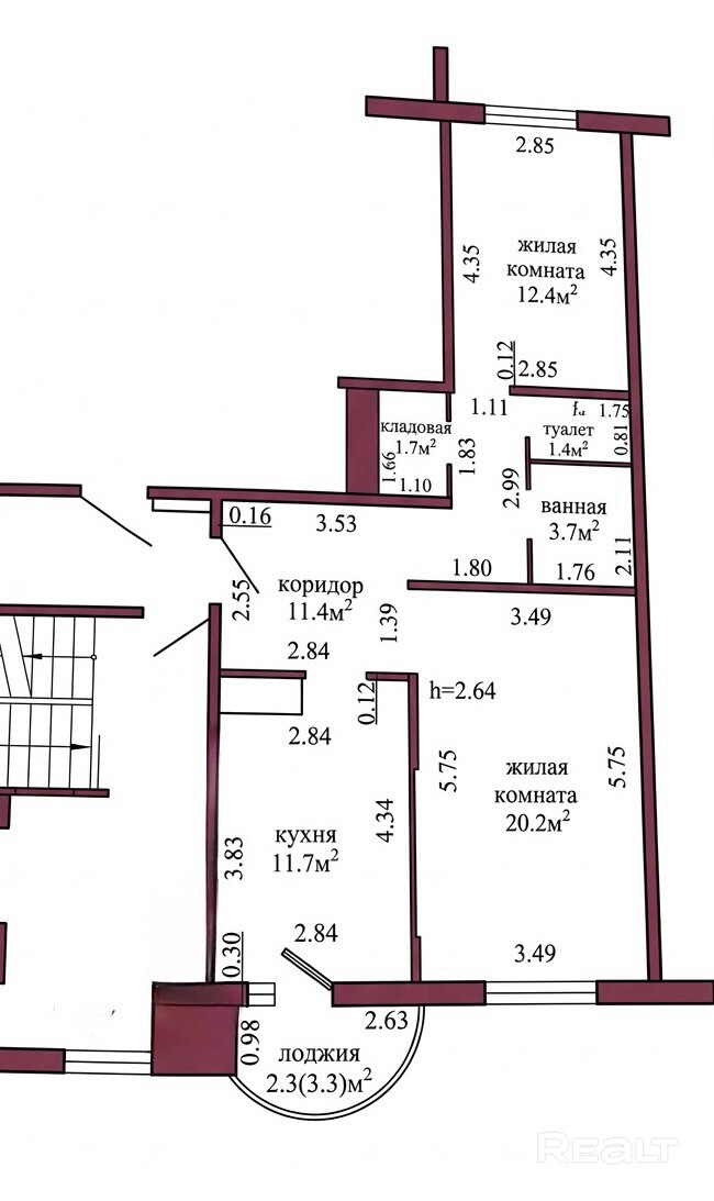 3 этаж 9-тиэтажного дома 2025 года постройки, материал стен – панель. Общая площадь 64.8 кв.м., жилая 32,6 кв.м., кухня 11.7 кв.м. Окна – ПВХ. Сан. узел раздельный.