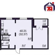 -Предлагается квартира на комфортном 2 этаже 5-этажного дома в новом жилом комплексе, общей площадью 60,2 кв.м., жилая — 32,37 кв.м.