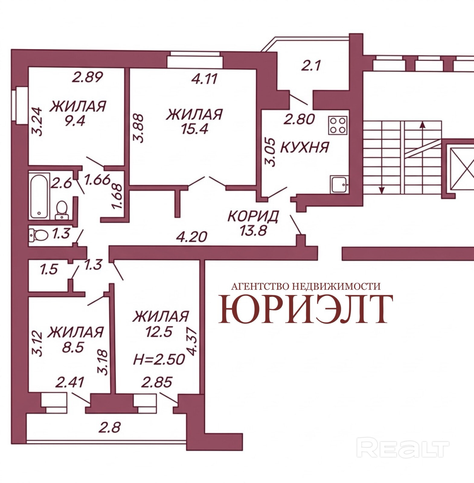 • Удобная эргономичная планировка: четыре изолированные комнаты, просторный коридор.
