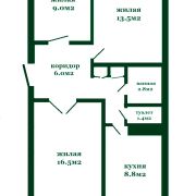 Общая площадь: 61,2 м2, жилая:39 м2, кухня 8,8 м2.