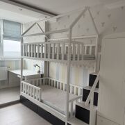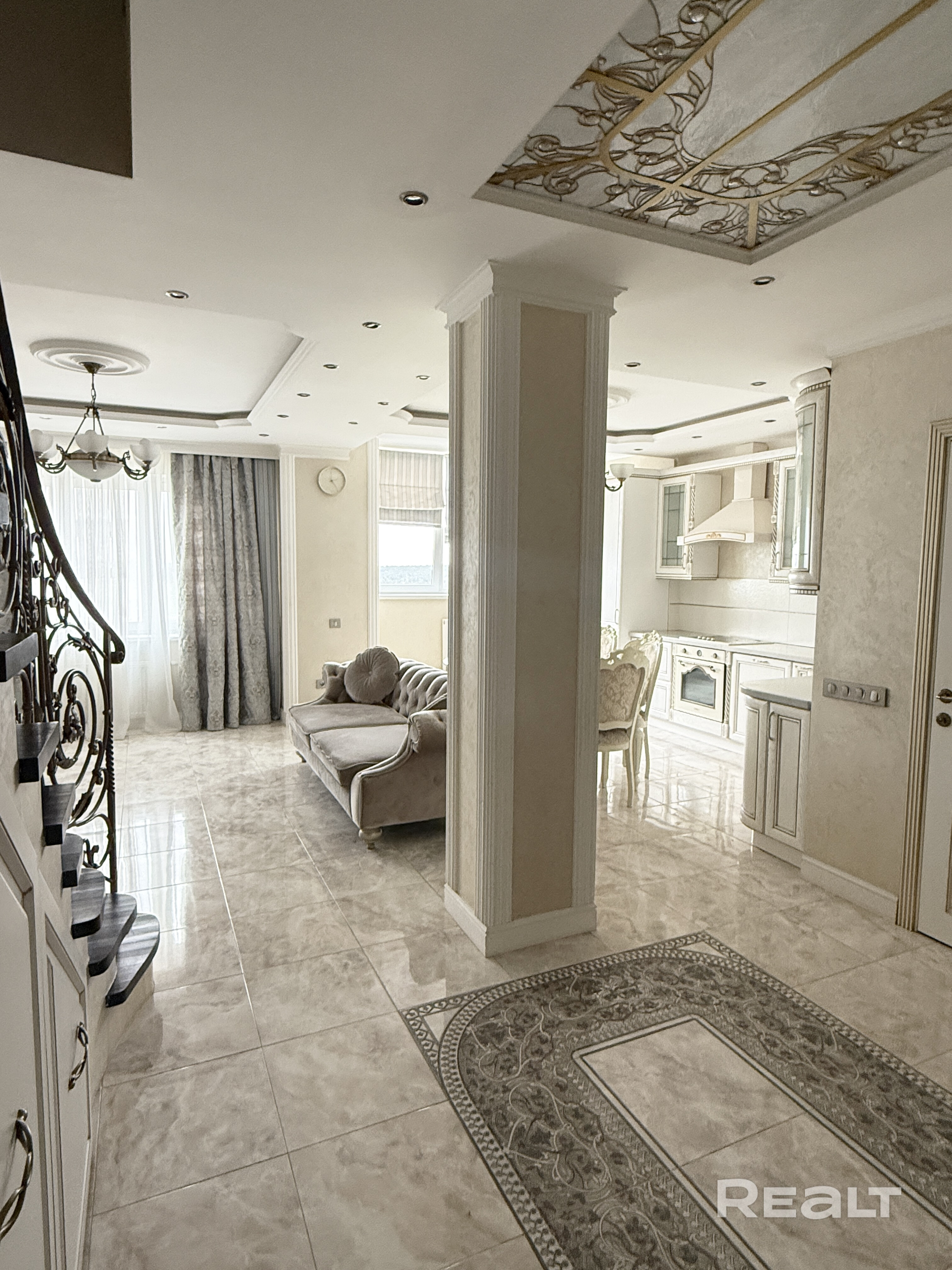 Двухуровневая квартира в монолитном доме, дизайнерский ремонт, 2 санузла. Ухоженный и аккуратный подъезд, шлагбаум, собственная парковка и видеонаблюдение. Выгодное и удобное расположение дома..в шаговой доступности 2 детских сада, школа, остановка, лес за домом. Красивый вид из окон 1 этаж: — кухня-гостиная — санузел — прихожая 2 этаж: — 2 изолированные комнаты — санузел Сантехника Villeroy & Boch , встроенная техника Smeg, итальянская плитка. Очень просторная и светлая квартира для семьи