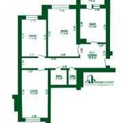 Площади: общая 75.5 м2, жилая 43,6 м2, кухня 11 м2. Высота потолков 2,53 м.