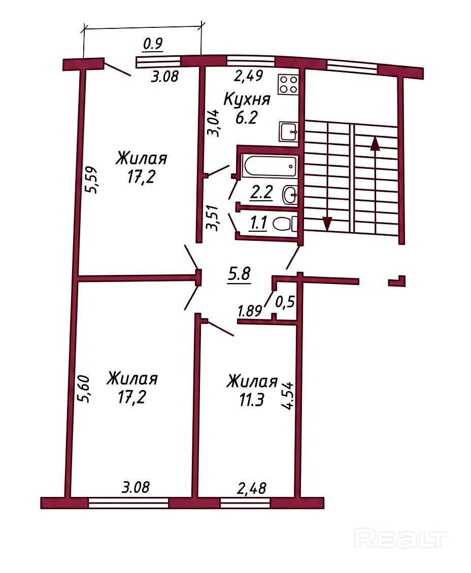 3-комнатная квартира в г. Гродно, ул. Домбровского, 13