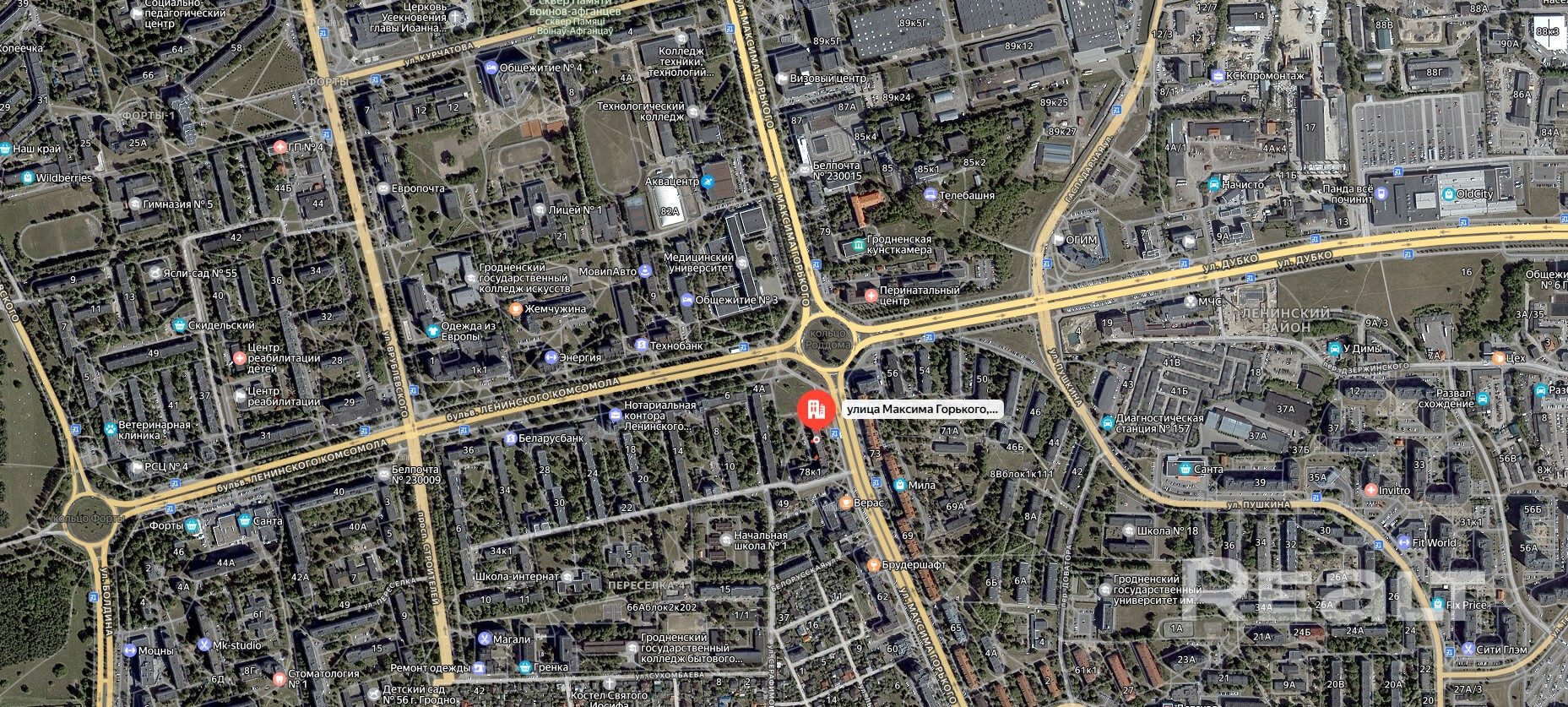 Продаётся четырёхкомнатная квартира, в одном из популярных районов города Гродно, на улице Горького, 78 в районе с развитой инфраструктурой. Неподалёку находится лесопарковая зона Пышки и река Неман. Рядом с домом расположены: стоянка для автомобилей, детские сады, школы, медицинский университет и колледж, областная больница, банки, продовольственные магазины, рынок «Корона», ресторан «Золотой Телёнок», ТЦ «Олд Сити», аквацентр, поликлиника, стоматология, аптеки. Есть все что нужно для комфортного проживания. А остановки общественного транспорта позволят без труда и в кротчайшие сроки добраться в любую точку города.