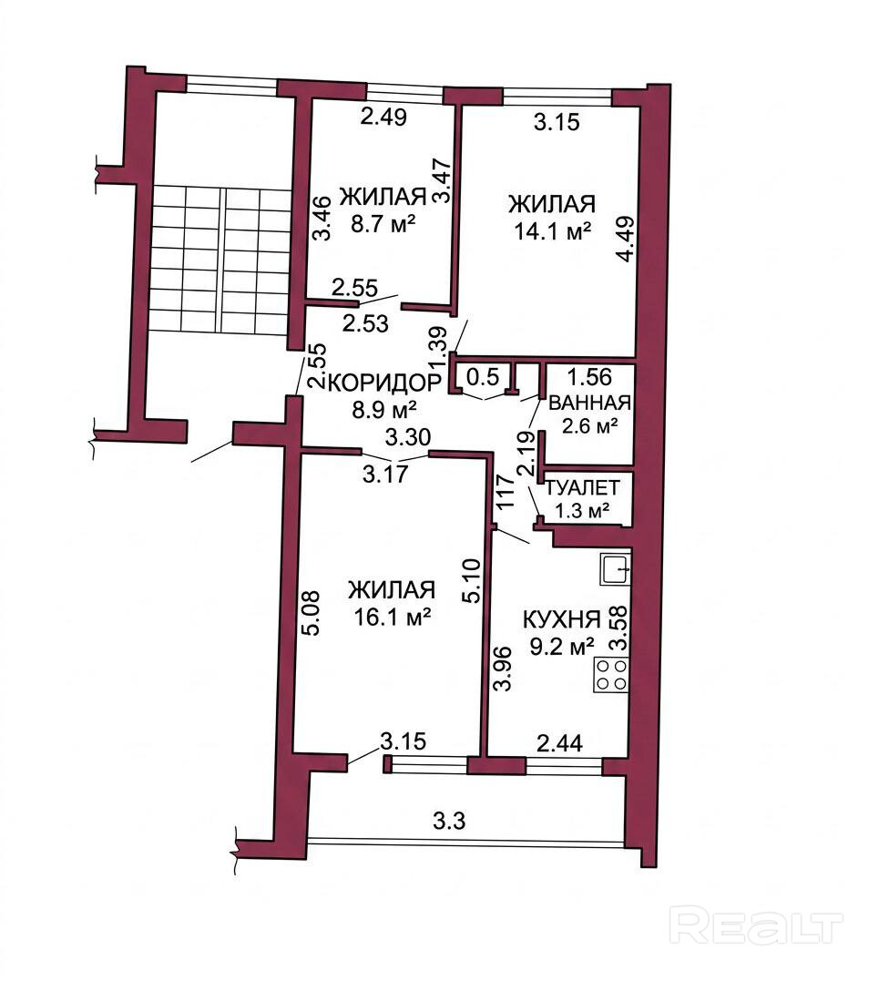 3-комнатная квартира г. Щучин, ул. 17 сентября, д. 10
