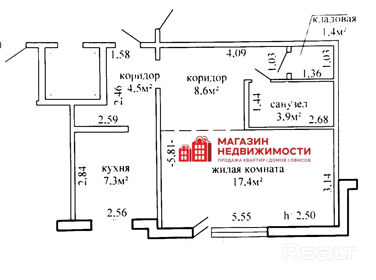 Жилая площадь: 17,4 м2