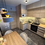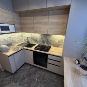 В комплекте кухня со встроенной техникой, шкаф в коридоре.