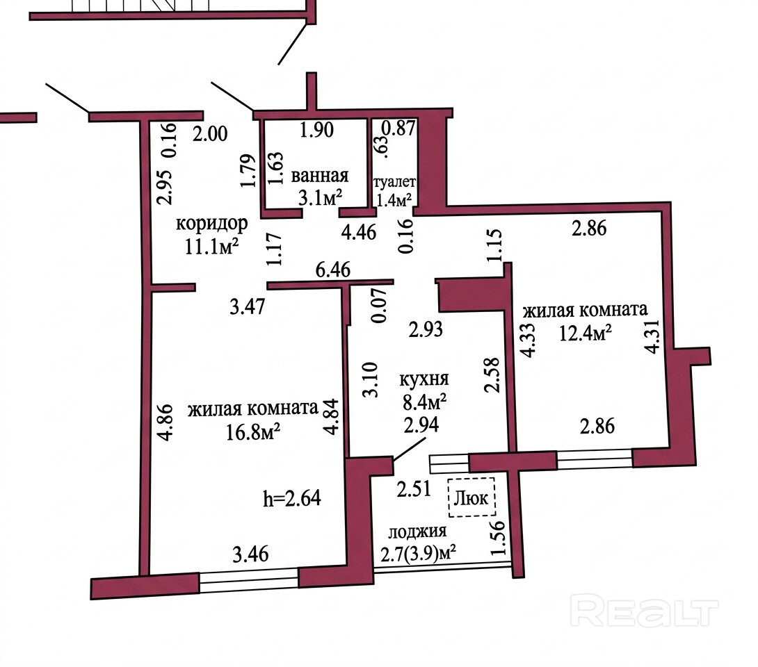 6 этаж/10 этажного панельного жилого дома. Год постройки 2021. Площадь общая 55.9, жилая 29.2,кухня 8.4 м2. Одна панорамная лоджия 3.9 м2. Санузел раздельный. Стены шпатлёваны, оклеены обоями,в коридоре декоративка. Уложен качественный ламинат, плитка.