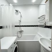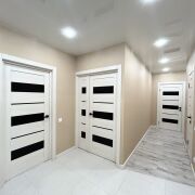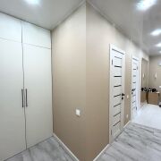Пол в квартире – ламинат, в прихожей и кухне - керамогранит. Потолки в прихожей, коридоре, санузле и ванной – натяжные, в других помещениях – окрашены. Стены – оклеены обоями, в кухне нанесена декоративная штука. Санузел раздельный, облицован плиткой. Окна – стеклопакеты ПВХ. Металлическая входная дверь, межкомнатные двери в одном стиле.
