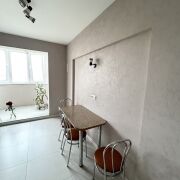 В квартире две лоджии, одна - с панорамным остеклением. Лоджии остеклены рамами ПВХ, на стены нанесена декоративная штукатурка, потолки окрашены, полы с подогревом, уложена плитка.