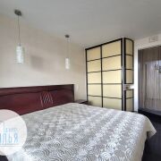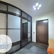 В коридоре установлен глубокий командор для хранения вещей. Имеется большая лоджия. Квартира продается почти со всей мебелью. Элитный ремонт выполнен в спокойных тонах.